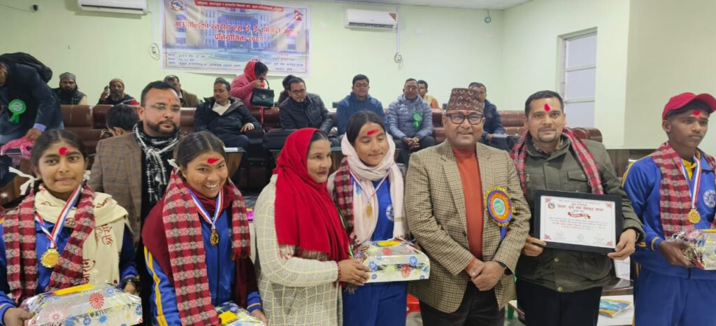 नेपालगन्ज । बाँकेको डुडुवा आयोजना गरिएको गाउँपालिकास्तरीय एसइइ स्तरीय हाजिरीजवाफ प्रतियोगितामा शहिद स्मारक माध्यमिक विद्यालय प्रथम भएको छ । शिक्षा युवा तथा खेलकुद शाखाको आयोजनामा भएको प्रतियोगितामा शहिद स्मारक प्रथम स्थान ल्याउन सफल भएको हो । प्रतियोगितामा श्री माध्यमिक विद्यालय बनकट्टी दोस्रो, फ्लोरिक एकेडमी छग्रहवा तेस्रो स्थान ल्याउन सफल भएका छन् भने पशुपति माध्यमिक विद्यालय […]